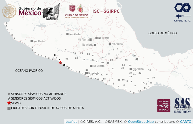 El SASMEX® generó Alerta Sísmica el día 08 de febrero del 2026 a las 15:42:28 hrs. (hora local) de magnitud 5.7. Distancia a la Ciudad de México de 443 [km].
