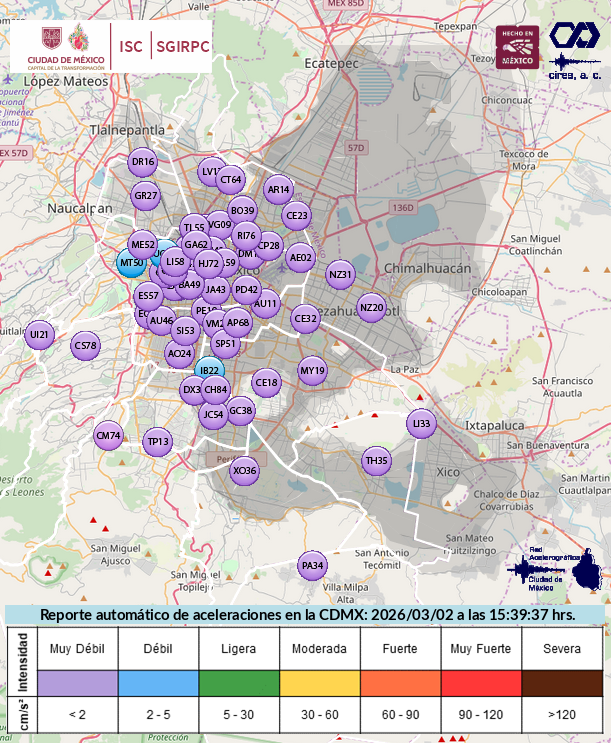 Resultado Preliminar del Sismo registrado el 02 de marzo del 2026 en la Ciudad de México a las 15:39:37 hrs. (hora local).
